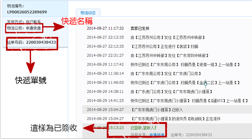 1.如何知道快递公司及快递单号?a 找到淘宝订单;b点查看物流.如下图所示,包裹登记时输入了快递公司及快递单号一直都"未到仓库"(可以在此查询快递公司及快递单号,确认输入正确,不要误输入订单编号)