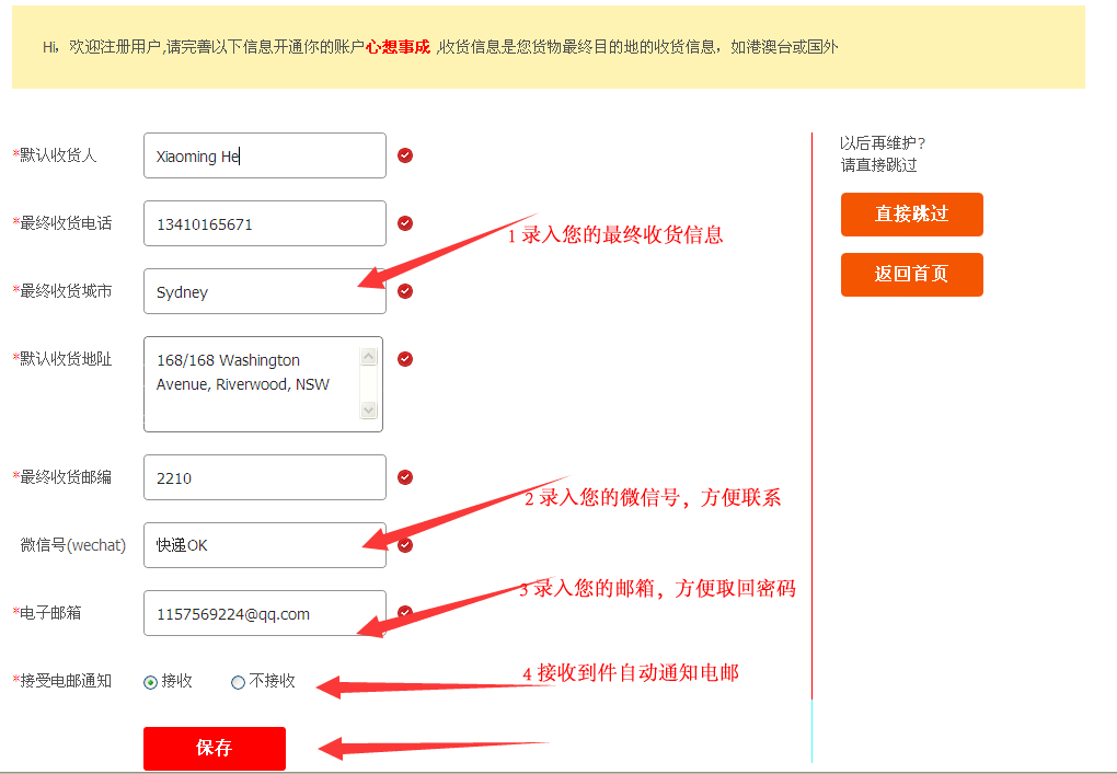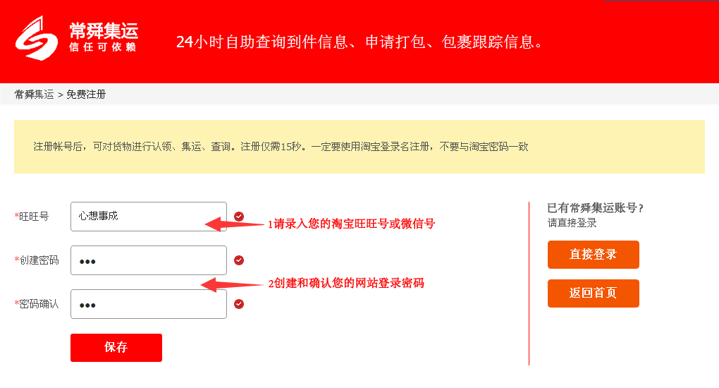请注意:一定要使用你的淘宝(微信)登录名注册,方便认领您的货物